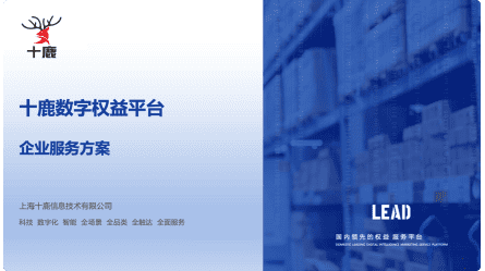 十鹿是专业的数字产品服务商:基于移动生活方式,打通线上线 下消费场景,服务于用户的权益、积分、福利等综合服务平台;十鹿积分商城通过打造智能化供应链、建立企业权益平台,整合众多优质品牌及供应商资源,为企业客户提供企业采购、营销活动、员工福利等个性化解决方案。